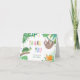 Adorável cartão de "obrigado" com animais lentos e folhas e flores tropicais! Apresenta uma preguiça, tartaruga e caracol simpáticos e pintados à mão se divertindo na selva entre flores tropicais coloridas.