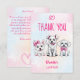 Vamos branco branco e rosa-rosa, bonitinho branco com arcos cor-de-rosa festa de aniversário da garota obrigado cartões cachorros cachorros com festa de aniversário temida