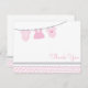 Cartão De Agradecimento Varal de Roupas Rosa Cinza Chá de Bebê Menina