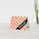 Cartões de agradecimento com um padrão de bolinhas sortidas com tamanhos alternados de círculos brancos sobre um fundo laranja estilo café. "obrigado" é impresso diagonalmente em branco na frente sobre uma faixa preta diagonal no canto inferior direito. O interior é impresso personalizado com o seu próprio texto, ou pode ser facilmente deixado em branco para escrever à mão os seus próprios sentimentos de gratidão. Ao redor desta área de texto modelo está o mesmo padrão de bolinhas sortidas, um elemento único em oposição ao típico interior branco. Este estilo e esquema de cores tornam estes cartões uma escolha apropriada para Chás de Panela, Chás de Bebê e Aniversários.