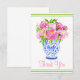 Cartão De Agradecimento Vaso de Borda com Peônias Rosa em Chinoiserie