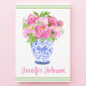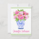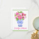 Cartão De Agradecimento Vaso de Peônias Rosa Bordado à Mão Personalizado