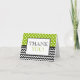 Cartoes de agradecimento elegantes e para todas as ocasiões com bolinhas brancas sobre o verde no topo e um padrão ziguezague de chevron preto e branco na parte inferior. O interior pode ser personalizado com sua própria mensagem personalizada ou pode ser facilmente excluído para deixar o cartão em branco para escrever sua mensagem à mão.
