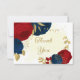 Vermelhos escuros românticos e flores azuis marinhos com folhas de ouro cartões de agradecimentos de casamento botânico Os detalhes de brilho são simulados.