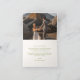 VERONA Wildflower Monograma Crest, cartões de agradecimentos de fotos de casamento dobrado. Recursos, linhas de texto de modelo para seus nomes e mensagens personalizadas em tipografia verde-mussa com fundo de cor bege-claro.