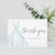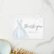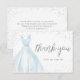 Cartões de agradecimento de Quinceanera elegantes apresentam vestido azul claro aquarela com escrita de agradecimento em brilho prateado falso, ótimo para festa de 15 anos.