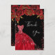Cartão De Agradecimento Vestidos vermelhos pretos florais reluzente aniver