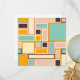 A vibrant abstract pattern with rectangles of varying sizes in teal, orange, peach, and cream tones, outlined in dark brown. Geometric and retro feel.