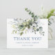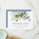 O Cartões de agradecimentos de Casamento de Calor Botânico Elegante moderno inclui folhas de eucalipto, folhagem botânica verde, folhas azuis empoeiradas e outros belos lençóis botânicos. Pó Azul.