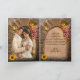 A romantic wedding Thank You card featuring a painting with Roman arch with sunflower, lantern, wine glasses and bottle and grapes overlooking a gorgeous vineyard landscape scene. The inside shows your own favorite wedding photo, framed by an arch and on the right side your texts.