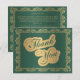 Este design tem uma arte de tipografia "obrigado" em dourado, com um fundo esverdeado. Uma moldura com padrão vintage está na parte de trás e na frente do cartão, em cor dourada. Na parte traseira do design, você pode adicionar sua mensagem personalizada e nome(s). Este cartão de agradecimento pode ser usado para ocasiões como casamentos (principalmente), chás de bebê ou até mesmo para festas de aniversário. Considere usar a ferramenta de Design para edição do estilo da fonte, incluindo tamanho da fonte, estilo da fonte e personalização de cor. Visite nossas Coleções para designs de cartões de agradecimento semelhantes.