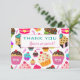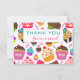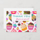 Um cartão de agradecimento com um padrão de cupcakes coloridos. Brilhante e alegre, este design é perfeito para dizer 'Obrigado. Você é tão doce!'. Um cartão divertido para mostrar sua apreciação aos amantes de cupcakes. O verso fica em branco para que você possa escrever sua própria mensagem ou anexar um voucher de presente.