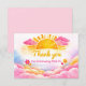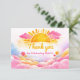 Thank your guests with this charming sunshine baby shower design featuring a glowing sun, soft pastel clouds, and delicate floral accents. The warm yellow and blush tones create a sweet and joyful atmosphere, perfect for expressing appreciation after your celebration. This cheerful sunshine theme pairs beautifully with baby girl shower decorations and adds a heartfelt finishing touch to your special day.