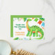 Este design de aniversário de dinossauros brontossauros apresenta ilustrações pintadas manualmente numa paleta colorida de verdes, azuis e laranja. Na parte traseira do cartão há um vazio verde de apoio com espaço para deixar uma mensagem manuscrita. Você pode personalizar todo o texto para se adequar ao seu evento. Veja toda a coleção correspondente.