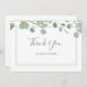 A aquarela elegante Eucalyptus deixa cartões de agradecimentos plano. Bonita sombra de sábio verde emparelhada com uma fonte moderna de escrita. Perfeito para um casamento ou chá de panela.
