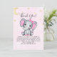 Cartão De Agradecimento Watercolor Pink Elephant Baby shower girl