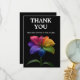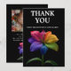 "Gratitude in Bloom: Flat Card Edition" — a wedding thank-you card from the Technicolor Love collection, designed to express heartfelt appreciation with radiant style. The front features the iconic rainblo lily in full multicolored bloom against a bold black backdrop, paired with a warm message like “Thank You for sharing in the love, laughter, and special moments.” Names and wedding date can be added in elegant script or modern type, depending on your tone.