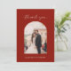 Express your gratitude with this modern wedding thank you card, featuring a bold terracotta red background, elegant script typography, and a soft arch photo frame for a timeless look. The minimalist design paired with a personalized photo creates a heartfelt keepsake your guests will cherish. Perfect for modern, romantic, or boho-inspired weddings.