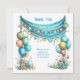 This charming thank-you card is perfect for expressing gratitude with a touch of whimsy and joy. Its vibrant teal color and playful design make it ideal for birthdays, especially for children. It's a delightful way to say thank you in a memorable and heartwarming style.