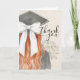 Express your gratitude with a touch of whimsical elegance. This folded thank you card features a beautiful, hand-painted watercolor sketch of a graduate from a back-view perspective. The design highlights a stylish black mortarboard adorned with a delicate border of white pearls and a stunning, oversized fabric bow with long, flowing tails. To complete the look, the graduate holds a lush bouquet of creamy white roses.
