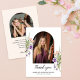 This graduate photo thank you card is accented with peach and purple wildflowers and lush greenery. The elegant layout offers space a photo on the front and a second on the back. Personalize the reverse side with your thank you message.