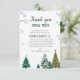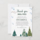 Elegante cartões de agradecimentos de comemoração de inverno com ilustração aquosa de pinheiros e flocos de neve. As palavras leram "obrigado você nevar muito pelo fazer do meu aniversário ONEMaravilhoso."