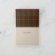Cartão de agradecimento colorido, feito no tradicional padrão xadrez tartan vermelho, verde, azul, amarelo e branco do clã Forrester. Um canto direito cor de areia tem gráficos de um arco de cordão de couro como uma borda, entre os fundos xadrez e areia. Texto preto escrito Obrigado, com texto personalizado preto, dentro está pronto para personalizar, para atender às suas necessidades.