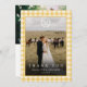 Elegante Rustic Yellow Gingham Crest Monograma 2 Foto "Obrigado" Cartão. Expresse sua gratidão em estilo com este charmoso cartões de agradecimentos de casamento gingham. Apresentando uma clássica borda amarela de gingham e uma crista elegante de monograma, a frente mostra sua foto favorita de casamento com uma mensagem de eterno "Obrigado". No verso, uma segunda foto e nota personalizada permitem que você compartilhe sua apreciação sincera com a família e os amigos. Perfeito para casamentos rústicos, country ou elegantes, este cartão personalizável "Obrigado" combina calor e sofisticação. Disponível em 6 cores de gingham, ele pode ser comparado através da suíte de casamento completa ou misturado para uma aparência colorida e alegre. Um bem-estar significativo que seus hóspedes vão tesourar.