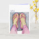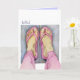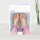 Ilustração a lápis colorida de um par de pés em pantufas, canecas ou flip-flops casuais, um cartão ou presente divertido para aqueles que gostam de pedaços brancos e humorísticos, que gostam de rosa, que desejam cumprimentar com humor, ou que gostam de pés! Carimbo, autocolante, imã, caneca, mousepad, avental, gravata, t-shirt.