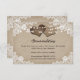 Você pode colocar este cartão temático do país em seus convites de casamento para deixar os hóspedes da cidade saberem de qualquer acordo de hotel ou código de grupo. Fácil de personalizar a modelo. Itens correspondentes disponíveis. Cartão de cerimônia de casamento russo com dois corações de burlap contra um fundo de burlap vintage enfeitado com luzes de cordas e um lugar floral branco.