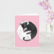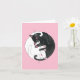 Cartão rosa com dois gatos dormindo entrelaçados em um círculo. Um gato preto e um gato branco. Atenção: Este é um cartão em branco, então se você quiser texto, você deve escrever o seu próprio!