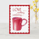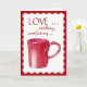 Uma caneca vermelha de chá ou café, com a alça em forma de meio coração, a outra metade refletida na própria caneca. Um presente maravilhosamente sutil para a pessoa especial na sua vida para o Dia do Namorados, um Aniversário, um Aniversário ou apenas para dizer olá, sinto sua falta ou te amo. Cartão, cartão postal, adesivo, imã, botão, porta-voz, saco, avental, t-shirt.