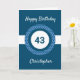 Um cartão de 43 anos azul personalizado, que você pode personalizar facilmente com seu nome na frente do cartão. Você também pode personalizar a mensagem do dentro, se quiser. Este cartão de aniversário azul personalizado de 43 anos para ele faria uma manutenção de excelente.