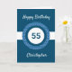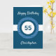 Um cartão de aniversário de 55 anos azul personalizado para ele, que você pode facilmente personalizar com a idade de que precisa junto com o nome dele na frente do cartão. Você pode personalizar facilmente a mensagem do dentro, se quiser. Este cartão de aniversário de 55 anos personalizado faria um excelente para ele.