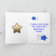 Uma grande estrela de ouro brilhante para o aniversariante. O fundo é azul com lindas espirais brancas.