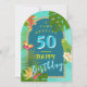 Cartão de aniversário anual atraente com tema tropical. Adequado para qualquer idade.