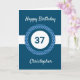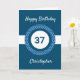 Um cartão de 37 anos azul personalizado, que você pode facilmente personalizar com seu nome na frente do cartão. Você também pode personalizar a mensagem do dentro, se quiser. Este cartão de 37 anos personalizado para ele faria uma manutenção de excelente.