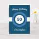 Um cartão de aniversário de 50 anos azul personalizado, que você pode facilmente personalizar com a idade de que precisa, juntamente com o seu nome na frente do cartão. Você pode personalizar facilmente a mensagem do dentro, se quiser. Este cartão de 50 anos personalizado para ele faria uma manutenção única.