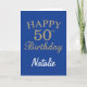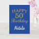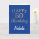 Cartão de aniversário azul e Dourado brilhante 50º com nome personalizado. Para mais personalização, clique no botão "Personalizar" e use nossa ferramenta de design para modificar este modelo.