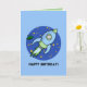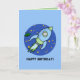 Ilustração de foguete giro no espaço sideral, rodeado por estrelas e uma pequena espaçonave verde. Também corresponde ao:
