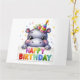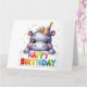 Parabéns. Bonito, Adorável Hippopotamus com um chapéu de festa. Um cartão de aniversário de uma criança adorável. Este cartão é vazio de dentro para sua própria mensagem. Também disponível como download Digital para transferência para outros produtos.