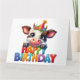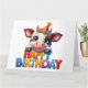 Parabéns. Vaca bonita e adorável com um chapéu de festa. Um cartão de aniversário de uma criança adorável. Este cartão é vazio de dentro para sua própria mensagem. Também disponível como download Digital para transferência para outros produtos.