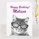 Grande cartão de aniversário extra grande para mulheres, personalizado com nome. Um cartão de óculos para vestir um gato gigante e grande. Desejos personalizáveis e cor de fundo. Cartão de saudação XL gigante com design gatinho giro. Personalize para ela; mãe, mãe, tia, avó, neta, neta, neta, filha, irmã, esposa, etc. Excelente para a senhora de gatos, a pessoa de gatos e o dono de animais de estimação. Foto do animal de gatinho doce.