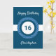 Um cartão de aniversário de 16 anos azul personalizado para ele, que você pode facilmente personalizar com a idade de que precisa junto com o nome dele na frente do cartão. Você pode personalizar facilmente a mensagem do dentro, se quiser. Este cartão de aniversário azul personalizado 16º para ele faria uma manutenção de excelente.
