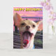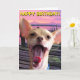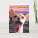 Cartão de saudação de fotos de Chihuahua. No texto original lê-se "Parabéns", no texto da dentro diz-se "Espero que tenha um dia excelente!" O texto pode ser personalizado.