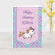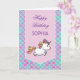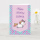 Cartão de aniversário com texto personalizável. Fita cor-de-rosa com fundo pastel em escala de sereia e um unicórnio fofo.