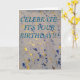 Cartão de Aniversário com Confetes define o clima para todas as ocasiões de aniversário. Azul real e dourado metálico fazem esta mensagem se destacar!