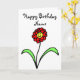 Cartão de Aniversário com Flor Vermelha Fofa e Ros