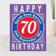 Cores brilhantes e design ousado. Cartão de aniversário numerado. 70 anos.