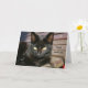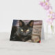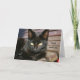 Este gato preto neste cartão de aniversário está só à espera. Talvez o bolo de aniversário, talvez a festa...